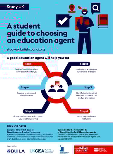 Students can read the official guide created by the British Council to help them choose a trusted education agent.